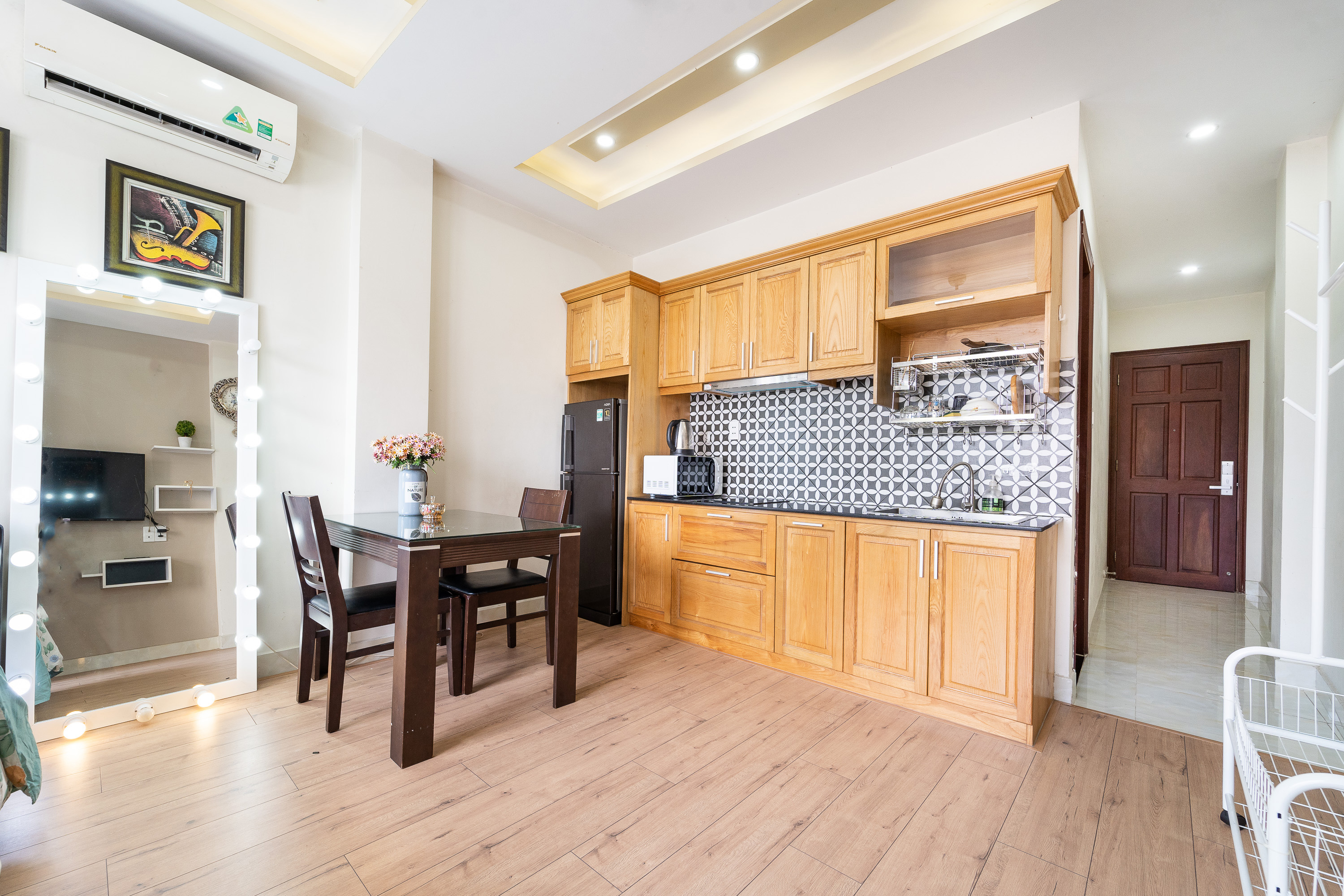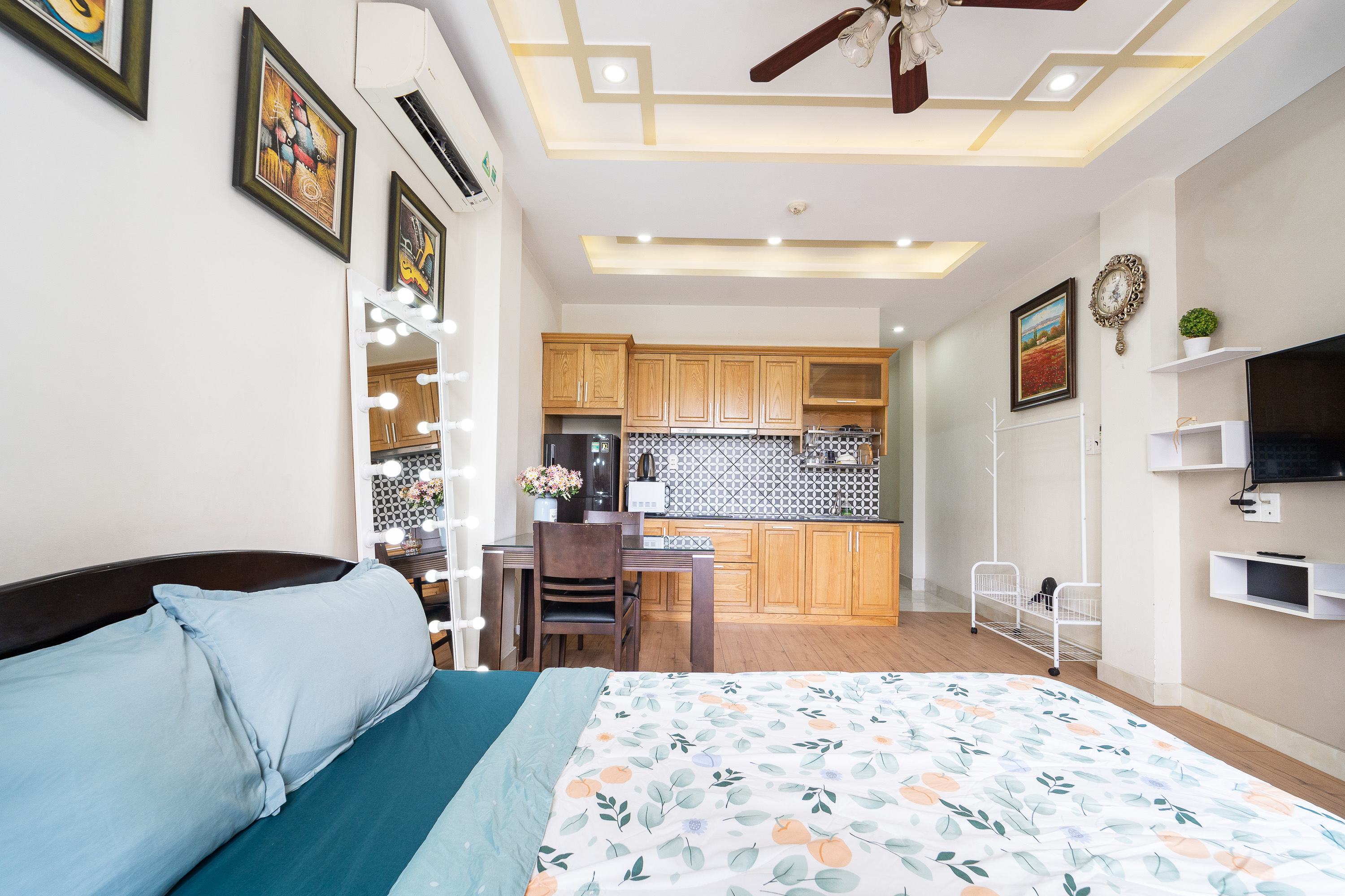 Căn hộ được trang bị giường đôi rộng rãi, phòng khách thoáng mát, bếp tiện nghi, cùng các dịch vụ hỗ trợ như wifi tốc độ cao, dọn phòng, chỗ để xe an toàn. Đây là lựa chọn lý tưởng cho khách du lịch, gia đình nhỏ hoặc người đi công tác cần một nơi ở thoải mái và riêng tư.